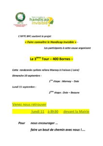 Faire connaître le Handicap Invisible : le 3ème Tour – 400 bornes Archives Actualités AFTC : https://www.aftc-bfc.fr/